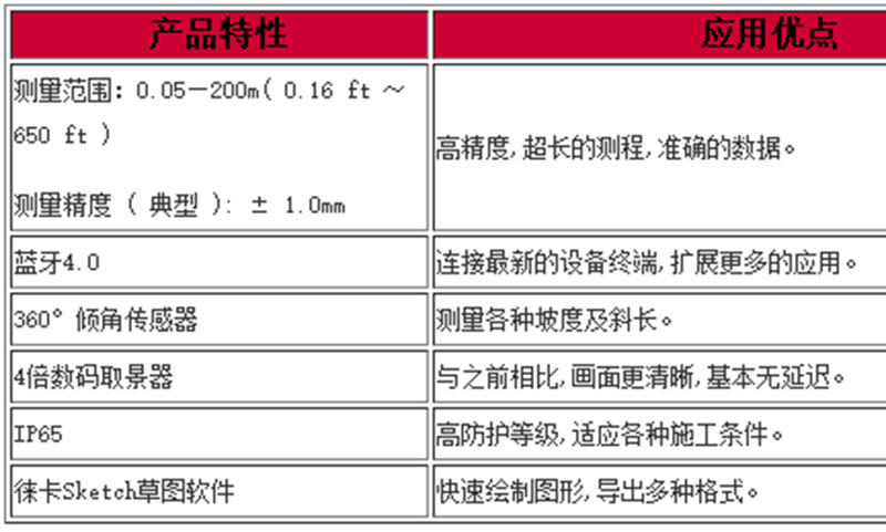 全新一代手持测距仪D510,在外观与内涵都有极大的突破,配置了最为先进的蓝牙4.0技术,支持与苹果终端设备连接;具有IP65的防护等级;全新的操作界面,直接内置计算器,每个功能都有相应的注释;360°的倾角传感器,让九州网站登陆(中国)网页版无死角。