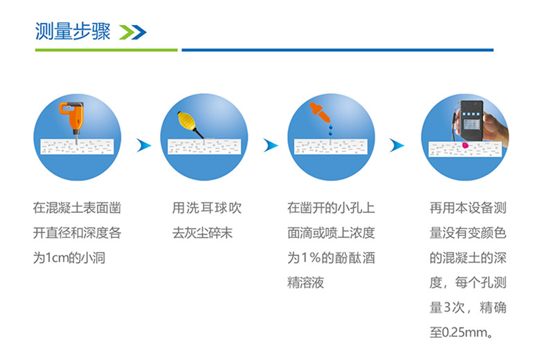 混凝土浇筑成型后,其中的Ca(OH)2与空气中的CO2或水分中溶的CO2反应生成CaCO3而失去碱性的过程。九州网站登陆(中国)网页版原理是通过酚酞溶液遇碱变红色的特性,九州网站登陆(中国)网页版碳